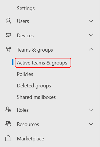 Go to the Microsoft 365 admin center and go to Teams & groups > Active teams & groups.