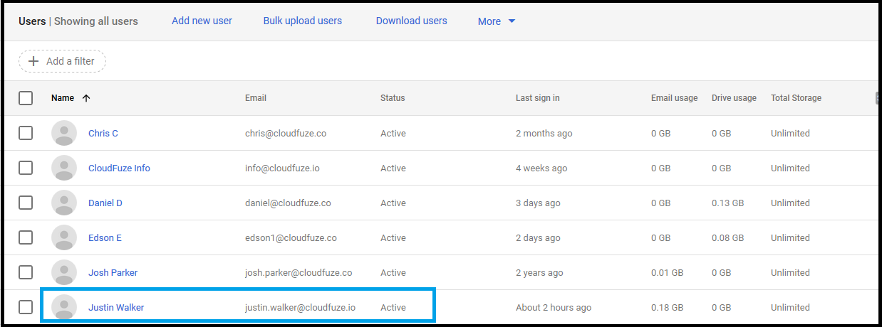 In this page, you will find the list of all users created under your company’s G Suite account. Search and find the user to whom you wish to grand the super admin access.