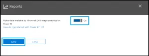 Set the “Make data available to Microsoft 365 usage analytics for Power BI” to “On” and click on the Save button.