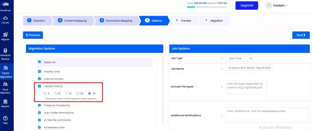 Focus on storage capacity, data transfer speed, metadata and security and you’ll have a smooth migration. With CloudFuze, your data is transferred fast, securely and with full support for all your business needs.